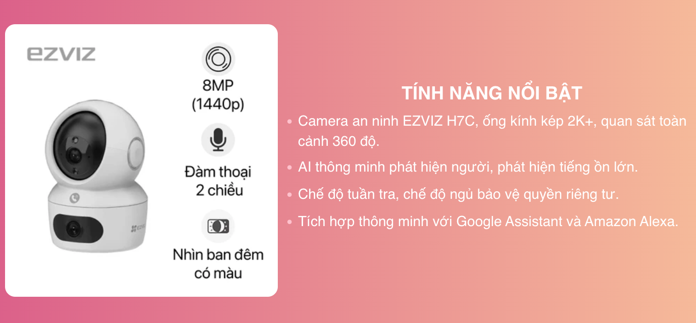 Camera Ezviz H7c 8MP IP Wifi 2 ống kính với thiết kế độc đáo và công nghệ hiện đại đã nhanh chóng trở thành lựa chọn hàng đầu của nhiều gia đình và doanh nghiệp. Khả năng cung cấp hình ảnh siêu nét, độ phân giải cao cùng chế độ giám sát 24/7 giúp bạn luôn yên tâm về an ninh. Đặc biệt, khả năng hoạt động ổn định trong mọi điều kiện ánh sáng và tính năng thông minh là những điểm cộng lớn, giúp Ezviz H7c vượt trội so với các dòng sản phẩm khác trên thị trường. Cùng mình tìm hiểu chi tiết các ưu điểm nổi trội của AI camera an ninh Ezviz này trong bài viết dưới đây bạn nhé!