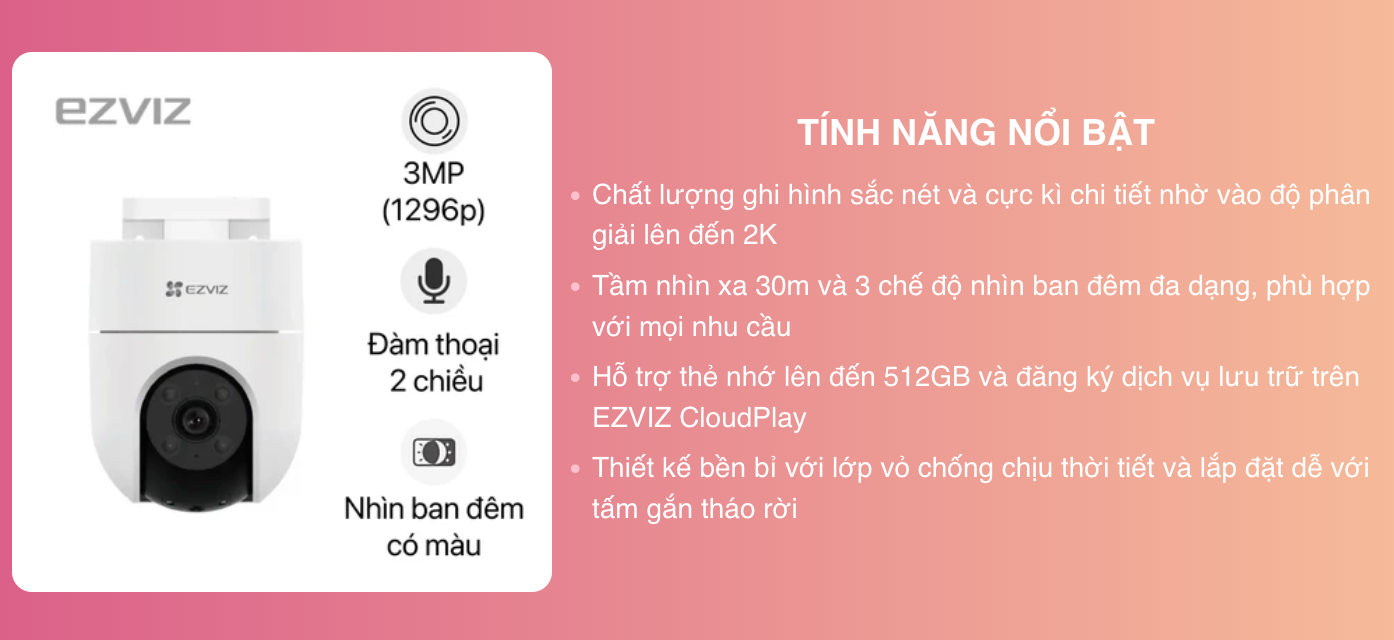Camera Ezviz H8C 2K Full Color ngày càng khẳng định được giá trị cũng như chiếm được lòng tin của đông đảo khách hàng. Mang trên mình thiết kế nhỏ gọn cùng với đó là rất nhiều tính năng quan trọng. Chắc chắn rằng khi trang bị sản phẩm camera an ninh Ezviz này, bạn sẽ yên tâm về vấn đề an ninh cũng như lưu lại được những hoạt động diễn ra xung quanh khu vực lắp đặt.