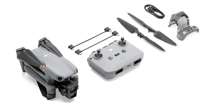Flycam DJI Air 3 RC-N2 được trang bị điều khiển từ xa RC-N2 tiêu chuẩn. Trong khi đó combo DJI Air 3 Fly More sẽ được trang bị bộ phụ kiện đa đạng hơn như pin sạc dự phòng. Chi tiết như sau: