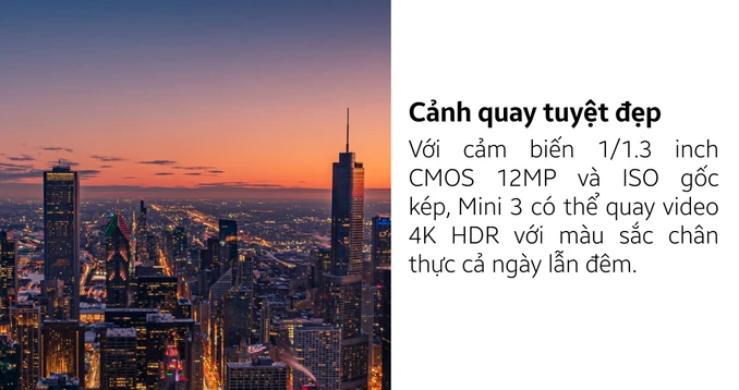 Bên cạnh khả năng quay video 4K sắc nét, DJI Mini 3 còn được trang bị nhiều tính năng hiện đại khác như HDR, giúp bạn có những thước phim chất lượng điện ảnh. Điều này cho phép người dùng ghi lại những bức ảnh và video với độ tương phản và màu sắc tốt hơn, mang đến những hình ảnh sống động và chân thực.