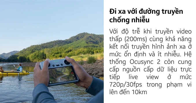 So với các thế hệ trước, công nghệ Ocusync 2 trên DJI Mini 3 đã có những cải tiến vượt bậc. Khả năng chống nhiễu được nâng cao đáng kể, giúp drone hoạt động ổn định ngay cả trong môi trường đô thị đông đúc hoặc khi thực hiện những thao tác phức tạp. Nhờ đó, bạn có thể tự tin sáng tạo những thước phim ấn tượng và độc đáo.
