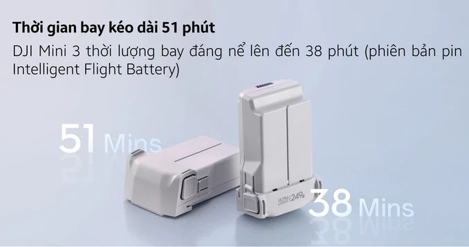 Thời gian bay flycam DJI mini 3 lên đến 38 phút