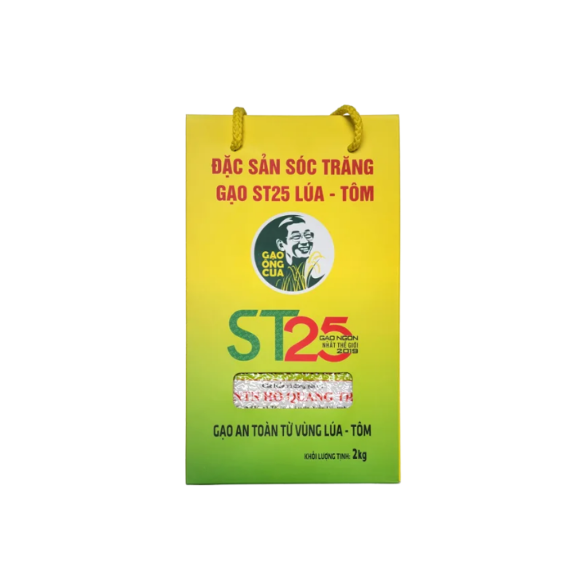 ạo Lúa Tôm ST25 2kg là loại gạo đặc sản được trồng trên mô hình canh tác lúa – tôm hữu cơ tại vùng nước mặn Bạc Liêu – nơi không sử dụng thuốc trừ sâu và phân bón hóa học.
