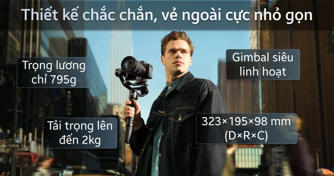 Mặc dù có thiết kế nhỏ gọn, tay cầm chống rung máy ảnh DJI Ronin RS3 Mini vẫn giữ được khả năng chịu tải ấn tượng. Với sức chịu tải lên đến 2kg, tay cầm này phù hợp với hầu hết các loại máy ảnh không gương lật và ống kính thông dụng trên thị trường. Điều này đảm bảo rằng người dùng có thể sử dụng Ronin RS3 Mini với nhiều loại thiết bị khác nhau mà không phải lo lắng về vấn đề tương thích hoặc hiệu suất.