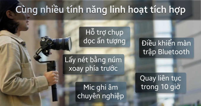 Tay cầm chống rung máy ảnh DJI Ronin RS3 Mini được thiết kế nhỏ gọn, dễ sử dụng giúp người dùng tối ưu hóa khả năng quay phim chuyên nghiệp với máy ảnh. Mặc dù có kích thước nhỏ gọn, sản phẩm gimbal này có khả năng chịu tải lên đến 2kg, phù hợp với nhiều loại máy ảnh không gương lật và ống kính. Công nghệ Bluetooth cho phép điều khiển từ xa dễ dàng, thay đổi các thiết lập mà không cần phải chạm vào máy ảnh. Với thời lượng pin lên đến 10 giờ, DJI Ronin RS3 Mini đảm bảo buổi quay không bị gián đoạn, phù hợp cho những dự án dài.